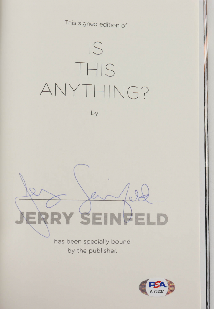 . - Signed Autographed Copy. Shop Jerry Seinfeld Signed Autographis This Anything Book - Beautiful Full Graph - TV Magazines and more music movie and TV memorabilia at Amazons Entertainment. Up to 4 cash back Signed Hardcover Book Comes fully certified with Certificate of Authenticity and tamper-evident hologram.